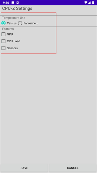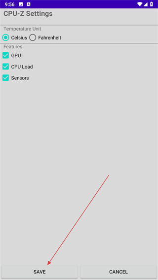 4、完成功能勾選后,點(diǎn)擊設(shè)置界面底部的SAVE按鈕,保存所做的設(shè)置,后續(xù)使用CPU-Z時就會應(yīng)用這些開啟的功能。