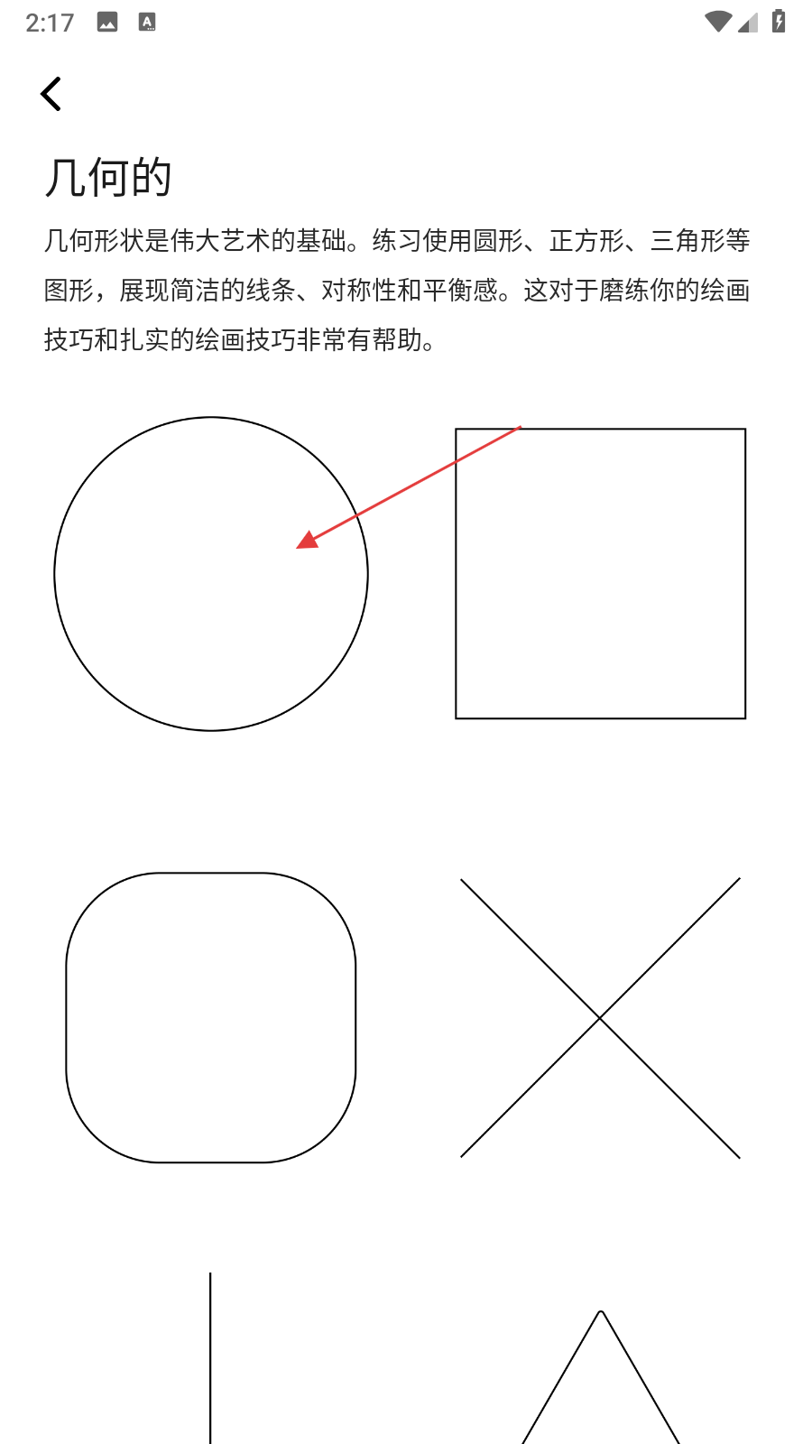 2、在幾何圖形展示頁面,挑選想要練習(xí)繪制的幾何圖形,點擊該圖形后進入操作選擇界面。