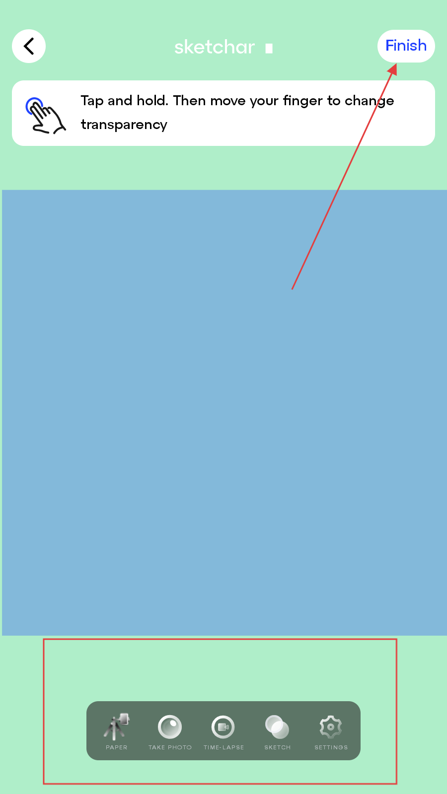4、在AR繪畫模式界面,利用底部工具欄的工具進行繪制,繪制完成后點擊右上角Finish按鈕。