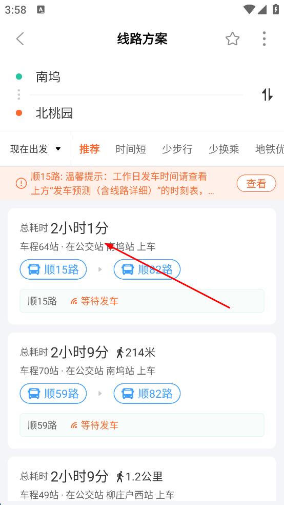 2.其次點(diǎn)開(kāi)搜索到的公交線(xiàn)路