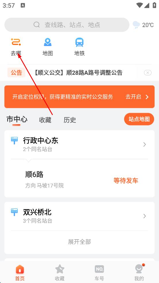 1.首先進(jìn)入到車(chē)來(lái)了APP中,搜索需要收藏的公交線(xiàn)路