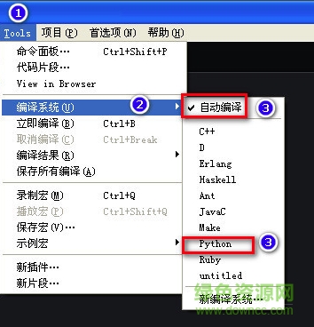3.然后點(diǎn)擊sublime text菜單欄的【Tool】選項(xiàng),在彈出的選項(xiàng)中點(diǎn)擊【編譯系統(tǒng)】,在二級(jí)菜單中選擇【Python】編譯語(yǔ)言就可以了。如果您要運(yùn)行其他的語(yǔ)言,您可以自行修改。