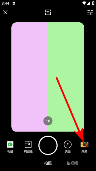 2、進入相機頁面后,點擊效果選項。