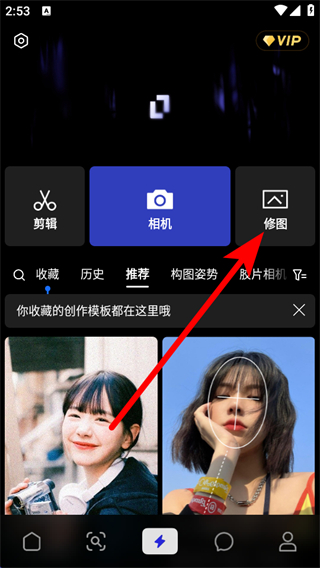 2、在創(chuàng)作功能頁面中,點擊修圖選項,進入圖片編輯入口。
