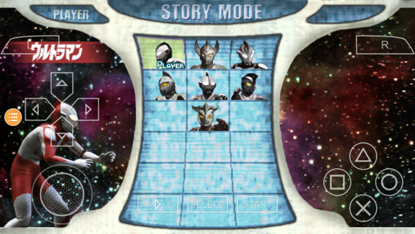 1、首先通過(guò)本站下載奧特曼格斗進(jìn)化0高清漢化版之后,在主界面選擇左邊的【上下左右】箭頭來(lái)進(jìn)行模式選擇,選擇好之后點(diǎn)擊右側(cè)的【圓圈】確認(rèn);