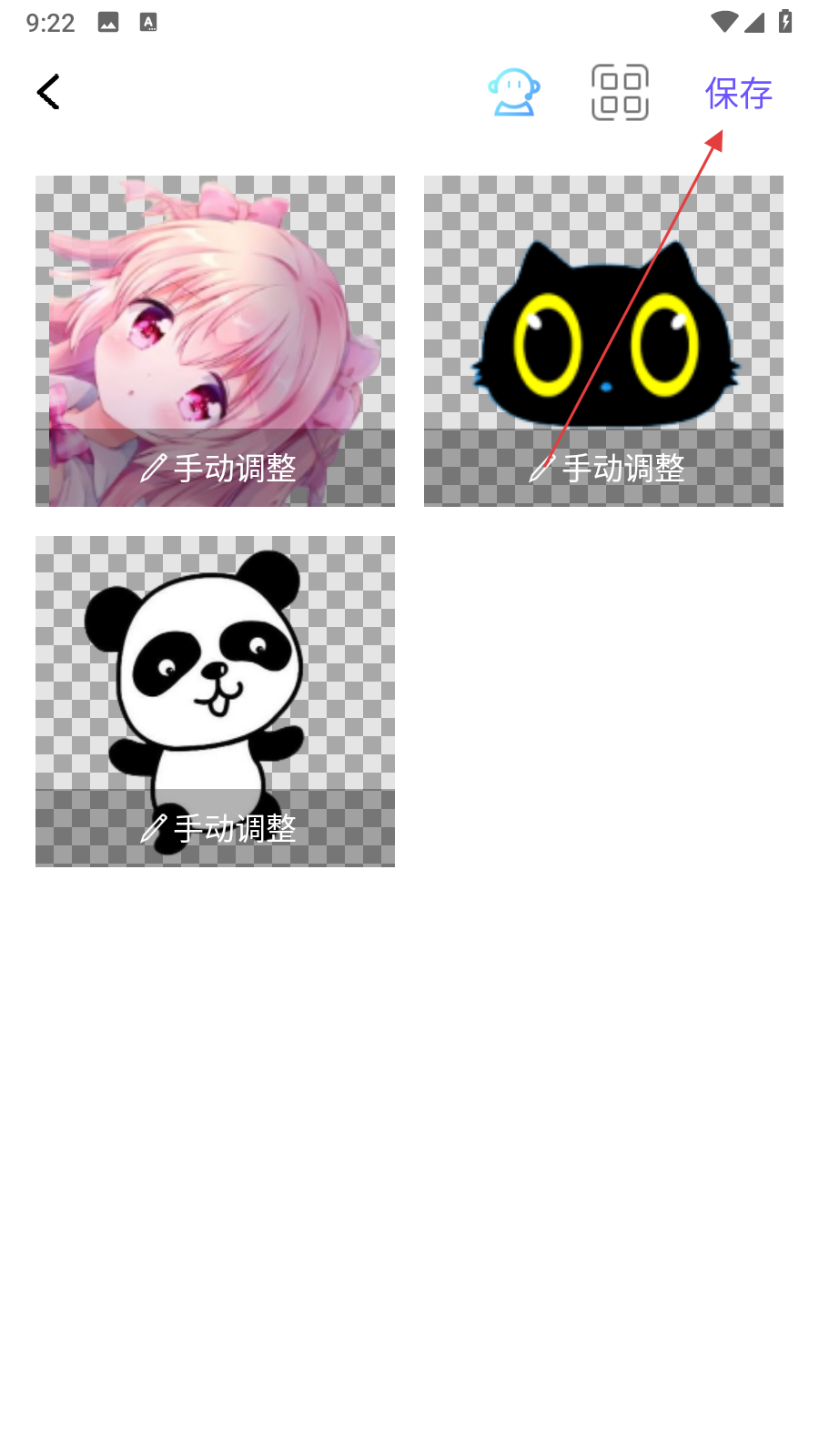 3、摳圖完成后,可對每張圖片進(jìn)行手動(dòng)調(diào)整優(yōu)化邊緣,調(diào)整完畢后點(diǎn)擊右上角保存按鈕,即可將批量摳圖后的圖片導(dǎo)出到相冊。