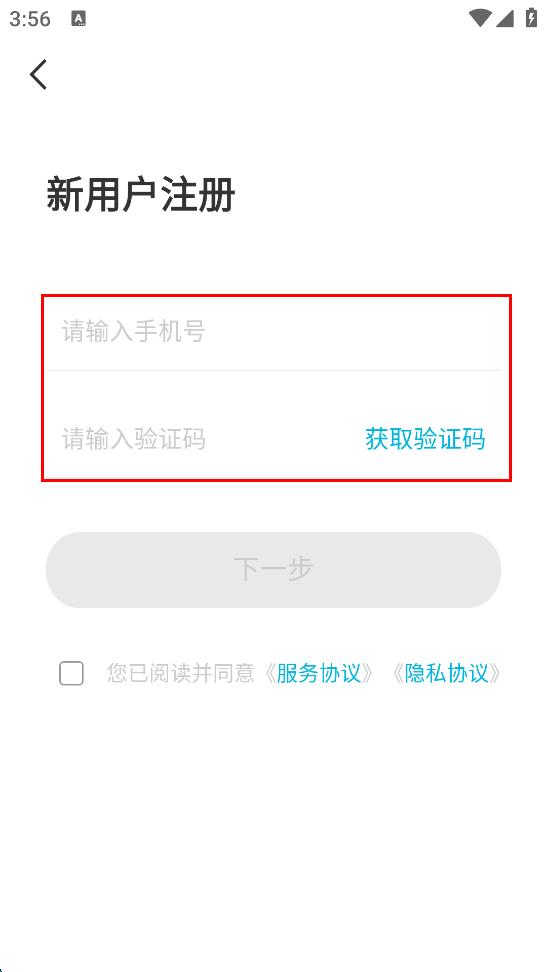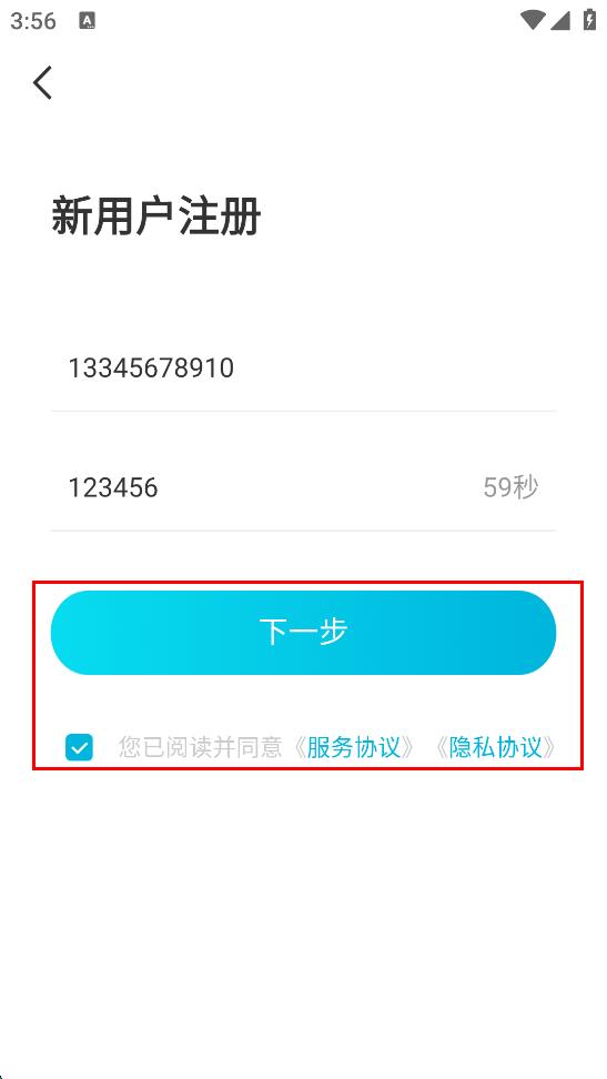 4、勾選您已閱讀并同意服務(wù)協(xié)議,隱私協(xié)議,點擊“下一步”,完成注冊操作。