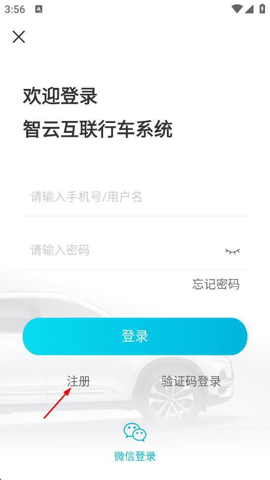 1、打開智云互聯(lián)行車系統(tǒng)APP,點擊頁面底部“我的”選項,進入登錄界面。
