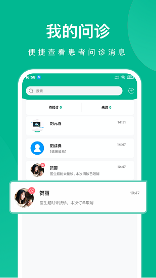便捷查看患者問(wèn)診消息;