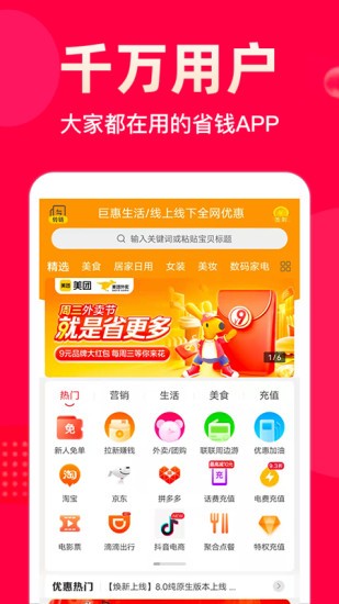 匯聚全網(wǎng)內(nèi)部?jī)?yōu)惠券,覆蓋吃、喝、玩、樂、購(gòu)等全領(lǐng)域,平均每年為用戶節(jié)省數(shù)千元。