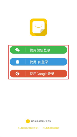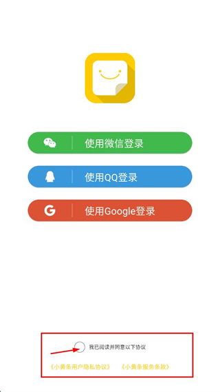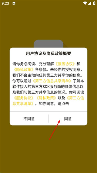 1、打開小黃條APP,閱讀用戶協(xié)議及隱私政策概要,點擊“同意”。