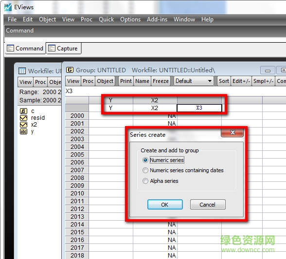 5.然后依次輸入每列相應(yīng)的名字即可,創(chuàng)建過程中出現(xiàn)彈框直接選擇“Numerical Series”選項(xiàng)即可。