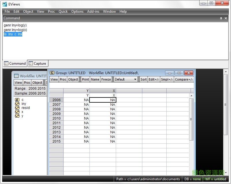 5.如果你想做OLS,可以直接在輸入欄中輸入:Is Iny c Inx;