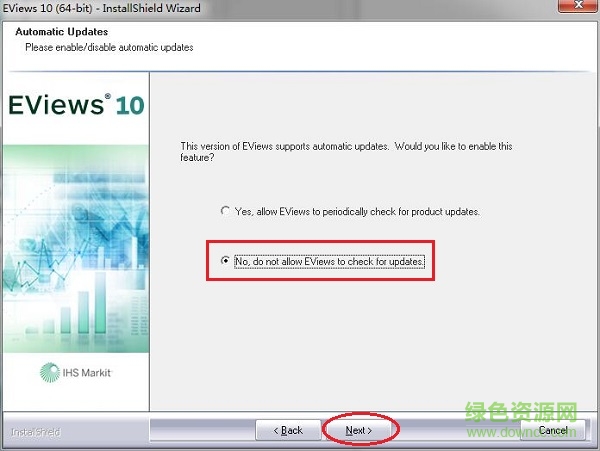 8.最重要的一步,如圖所示,一定要選擇第二個(gè)“No do not allow EViews to check for updates”