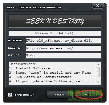 12.雙擊“eviews.10.(64-bit)-patch.exe”運(yùn)行,點(diǎn)擊右下角的“PATCH”按鈕