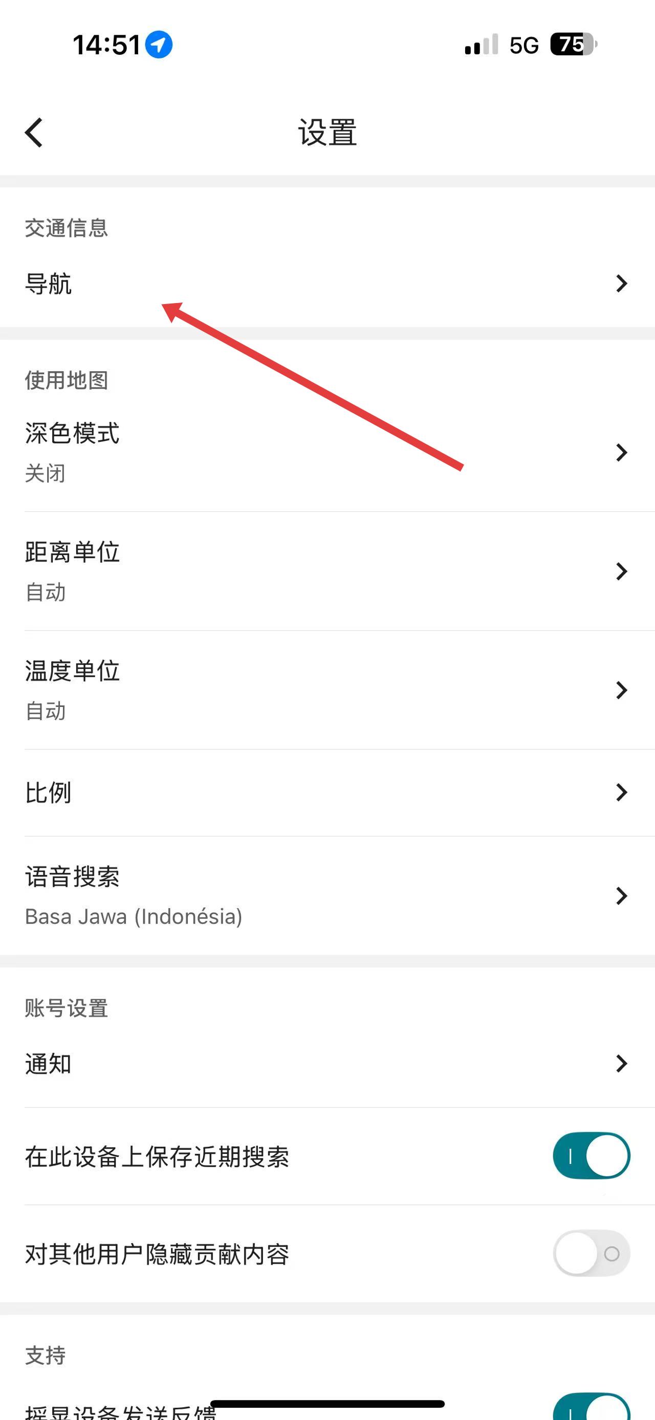 2、進(jìn)入設(shè)置頁面后,點(diǎn)擊導(dǎo)航選項(xiàng),進(jìn)入導(dǎo)航設(shè)置界面。
