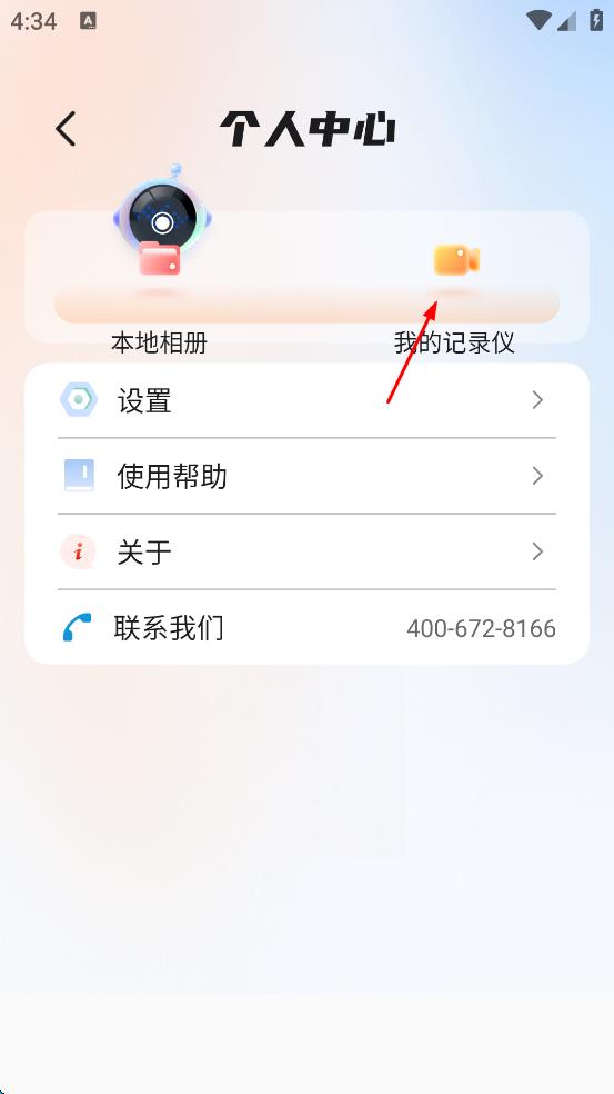 3、連接成功后,進入個人中心頁面,點擊“我的記錄儀”選項。