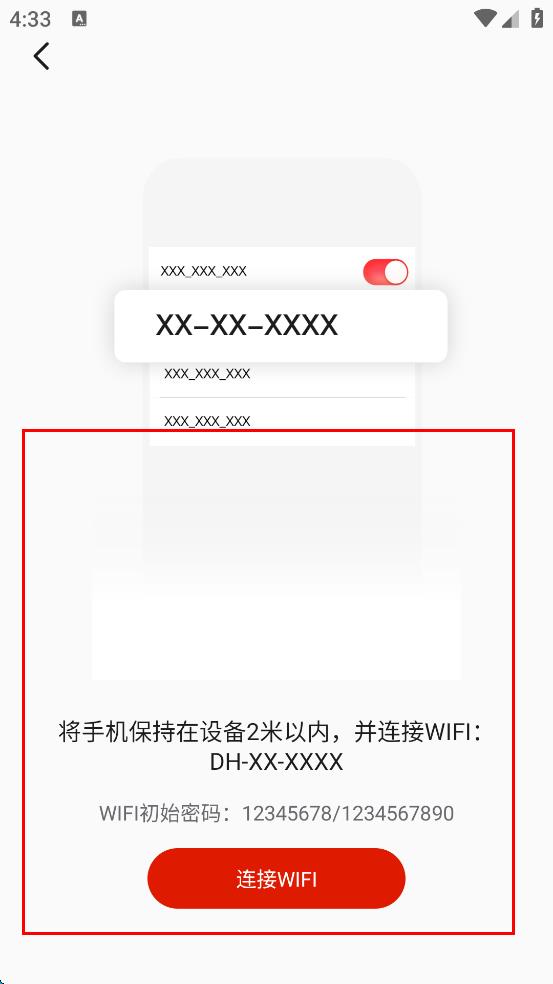2、將手機保持在設(shè)備2米以內(nèi),然后點擊“連接WIFI”按鈕。