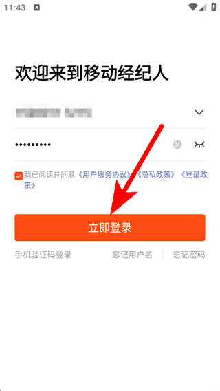 1、打開APP在登錄界面輸入用戶名或手機號、密碼,點擊立即登錄。