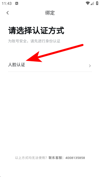 2、進入請選擇認證方式的頁面,我們需要點擊人臉認證的按鈕。