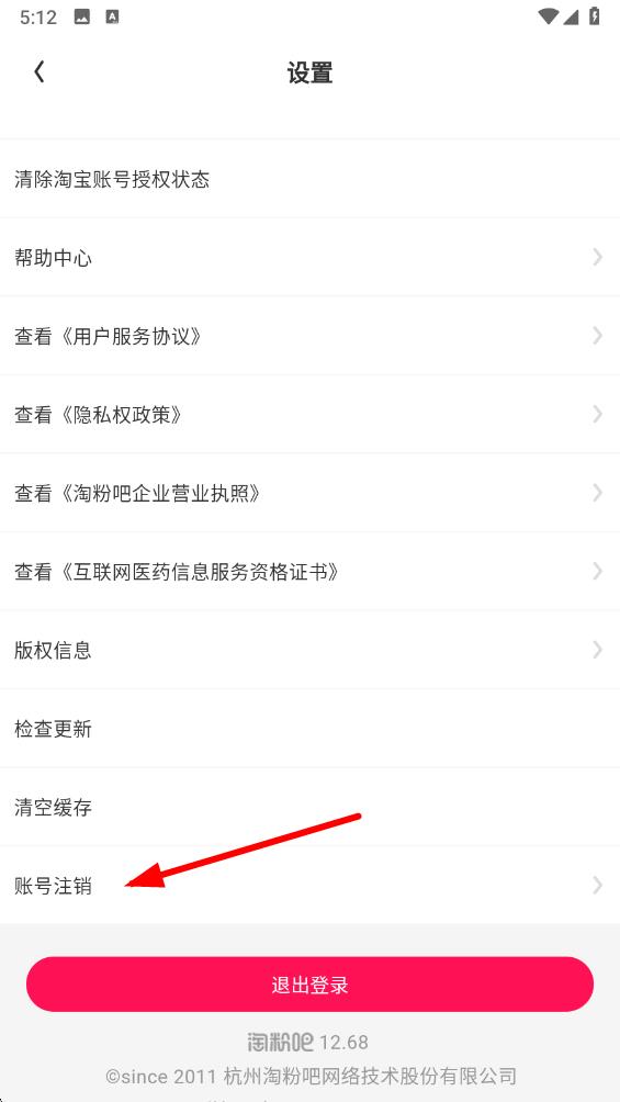 2、進(jìn)入設(shè)置頁(yè)面后向下滑動(dòng)屏幕,找到賬號(hào)注銷(xiāo)選項(xiàng)并點(diǎn)擊。