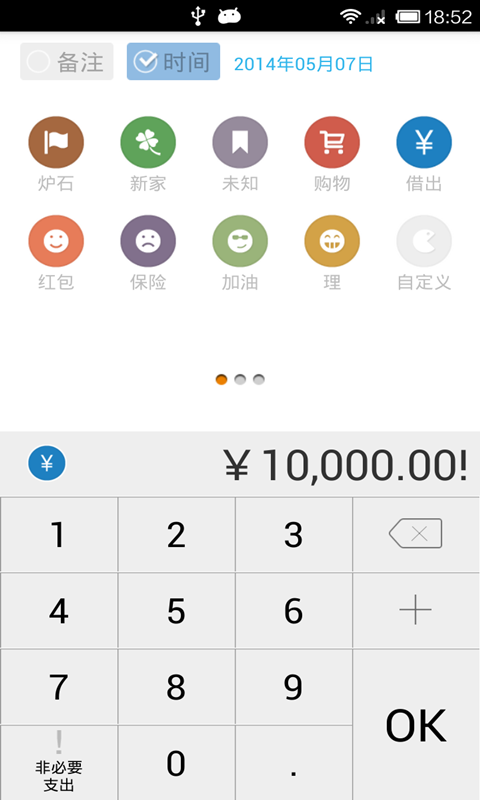 在添加記錄的時候,還有一個“非必要支出”按鈕,躲手黨們可以考慮。
