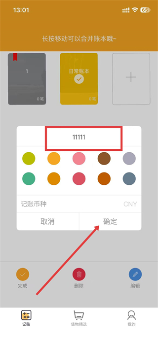 2、進入該賬本界面后,選擇并長按需要修改名稱的賬本。