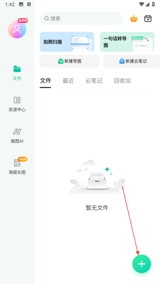 1、打開(kāi)萬(wàn)興腦圖應(yīng)用,點(diǎn)擊界面右下角的綠色+號(hào)。