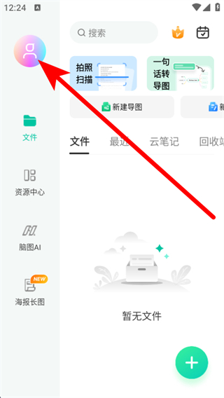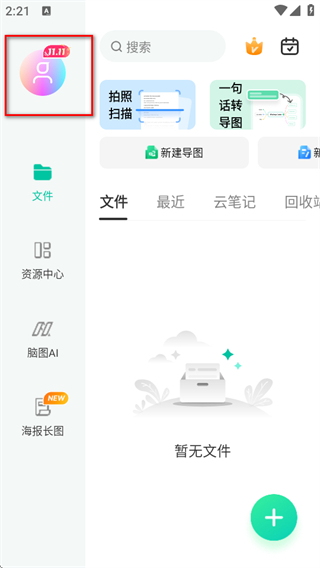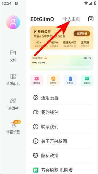 1、打開(kāi)萬(wàn)興腦圖APP,點(diǎn)擊左上角的個(gè)人圖標(biāo),進(jìn)入個(gè)人頁(yè)面。