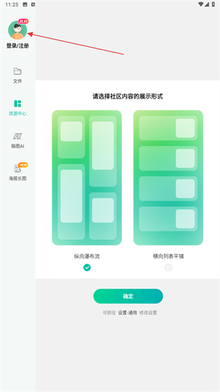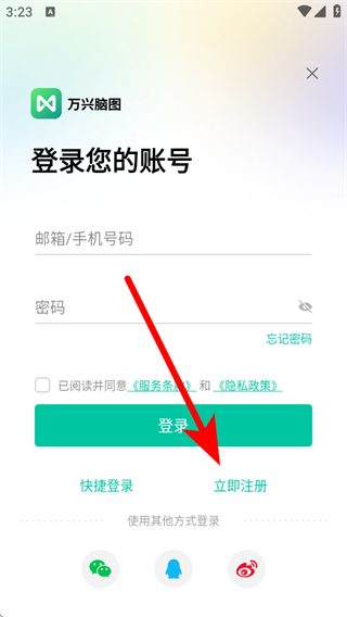 1、打開(kāi)萬(wàn)興腦圖APP,點(diǎn)擊左上角登錄/注冊(cè)圖標(biāo),進(jìn)入登錄頁(yè)面。