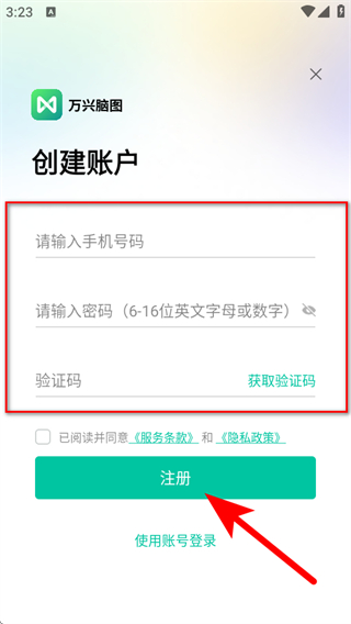 3、在創(chuàng)建賬戶頁(yè)面,輸入手機(jī)號(hào)碼等信息后,點(diǎn)擊注冊(cè)即可完成注冊(cè)操作。