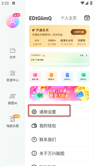 2、在個(gè)人頁(yè)面中,點(diǎn)擊通用設(shè)置,進(jìn)入通用設(shè)置頁(yè)面。