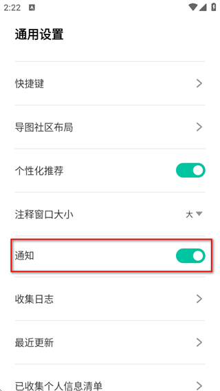 3、在通用設(shè)置頁(yè)面,找到通知選項(xiàng),點(diǎn)擊按鈕將其關(guān)閉即可。