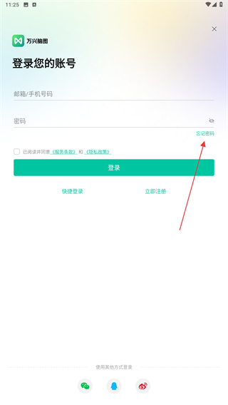 2、進(jìn)入登錄的頁(yè)面內(nèi),點(diǎn)擊右側(cè)忘記密碼的按鈕。