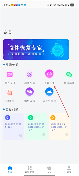 1、打開(kāi)數(shù)據(jù)恢復(fù)應(yīng)用,點(diǎn)擊音頻導(dǎo)出選項(xiàng)。