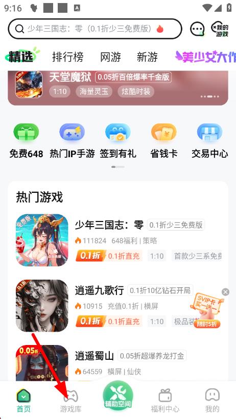1、打開3733游戲盒,點擊底部導(dǎo)航欄中的游戲庫,進入游戲查找界面。