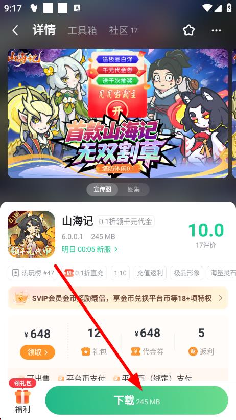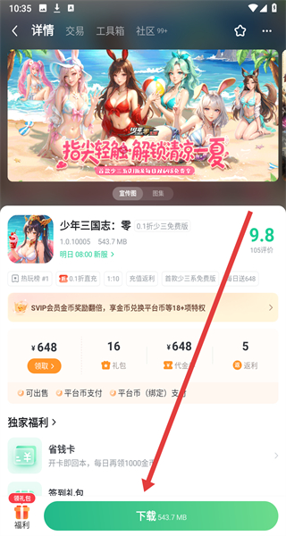 3、點擊游戲進入詳情頁,了解游戲介紹、福利活動等,再點擊下載,安裝完成后就能開始玩游戲了。