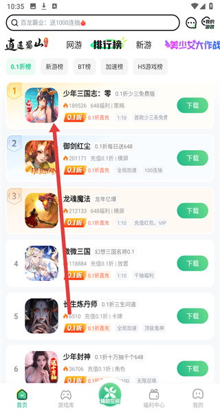 3、在排行頁面可以點擊少年三國志:零,點擊進入游戲詳情頁。