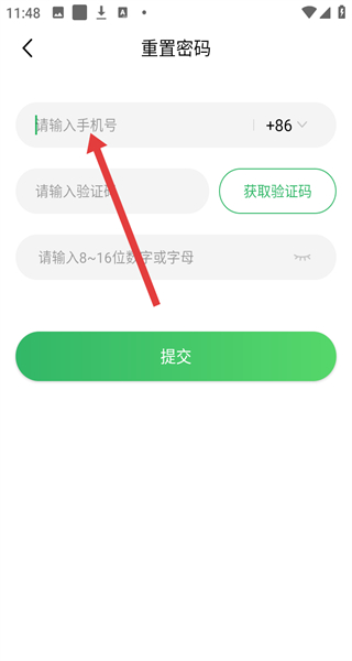 4、在進入到重置密碼頁面,根據(jù)輸入框提示填寫對應(yīng)內(nèi)容后,點擊提交按鈕即可完成重置操作。