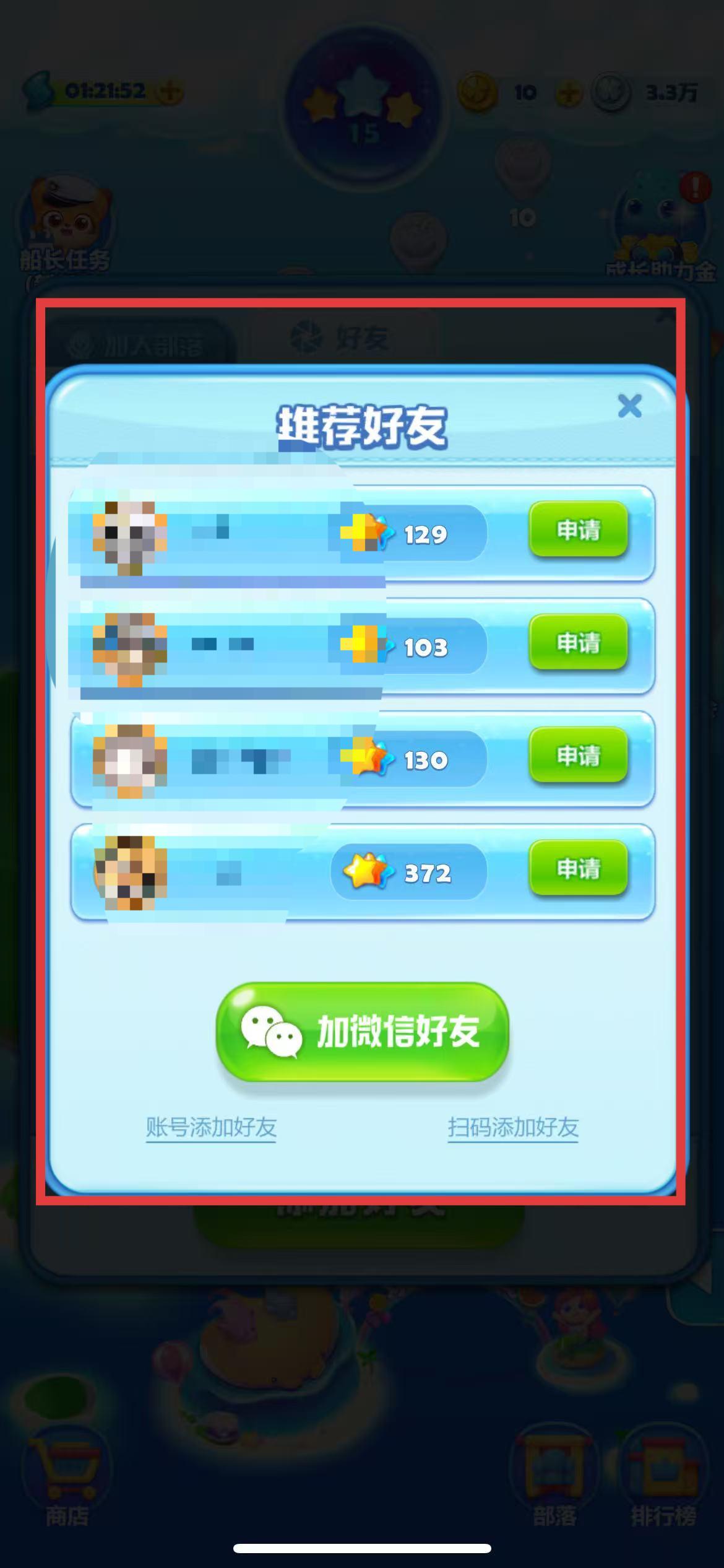 3、點(diǎn)擊添加好友后,會(huì)彈出推薦好友界面,根據(jù)需求添加好友。