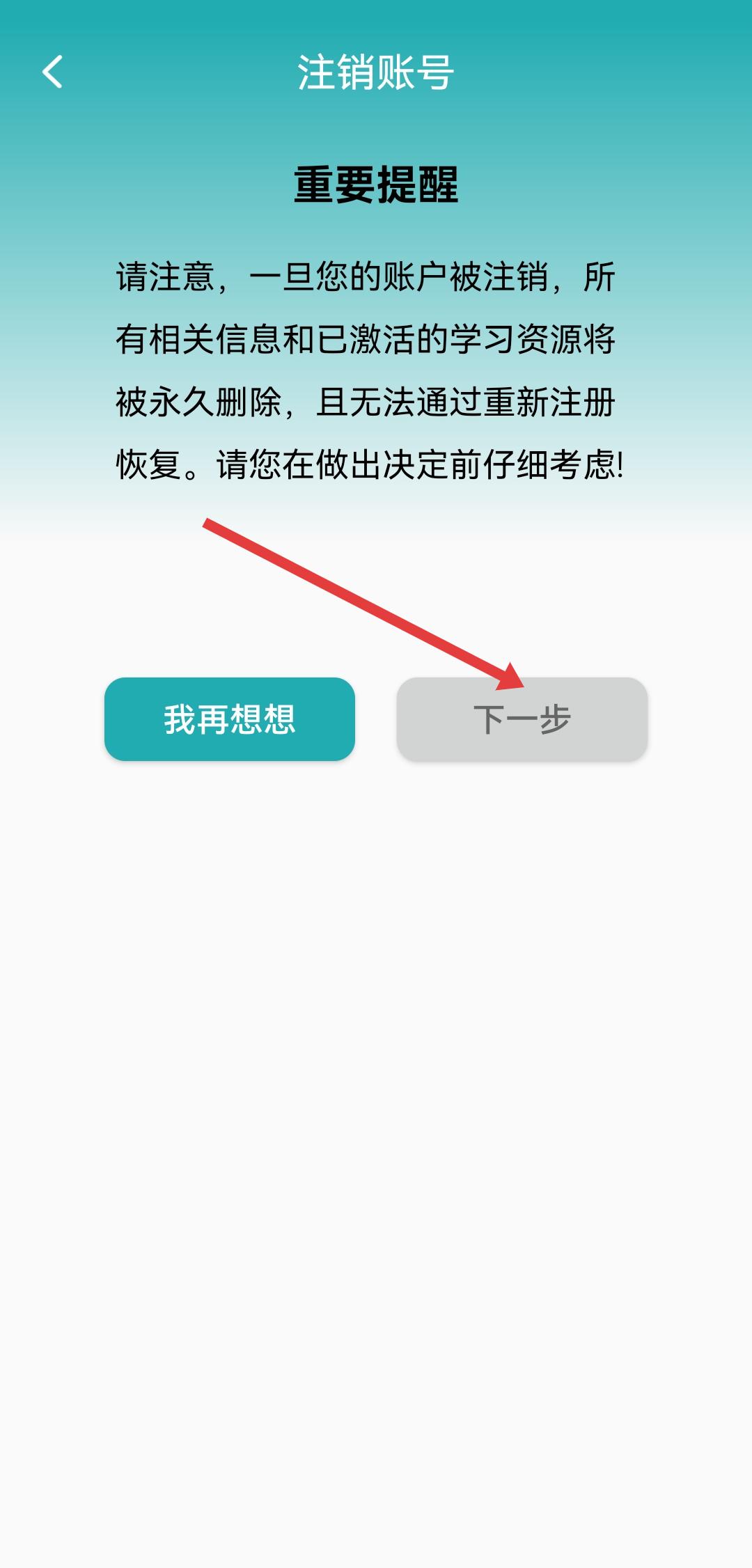 3、在注銷賬號的重要提醒頁面,點擊下一步,繼續(xù)注銷的操作。