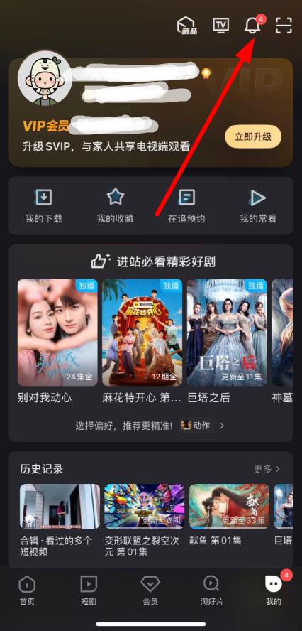1、打開優(yōu)酷APP,點(diǎn)擊右下角我的,在我的頁面中點(diǎn)擊右上角鈴鐺圖標(biāo),進(jìn)入消息中心。