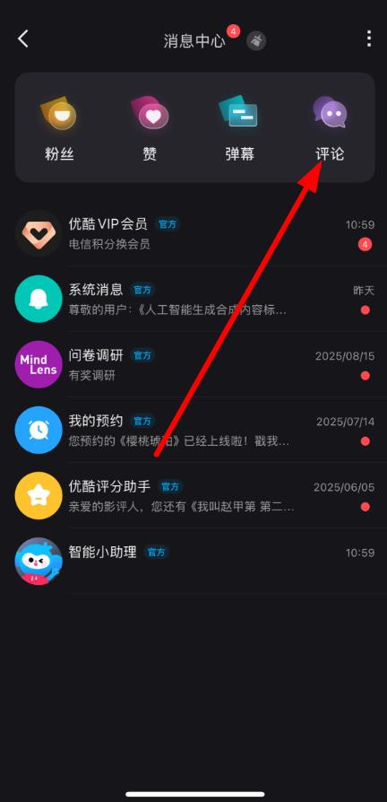 2、在消息中心界面,點(diǎn)擊上方的評(píng)論選項(xiàng)。