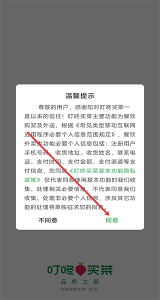 1、在打開App后,可以通過點擊溫馨提示彈窗中的同意按鈕,進(jìn)入使用。