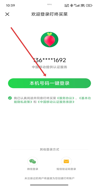 4、在登錄界面中,勾選好同意按鈕后,可以點擊本機(jī)號碼一鍵登錄按鈕,進(jìn)行登錄。