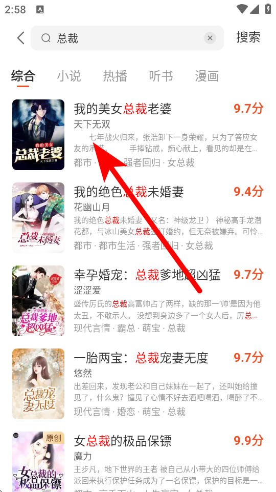 3、在搜索結果頁面,瀏覽找到目標小說,點擊小說封面或名稱進入小說詳情頁。