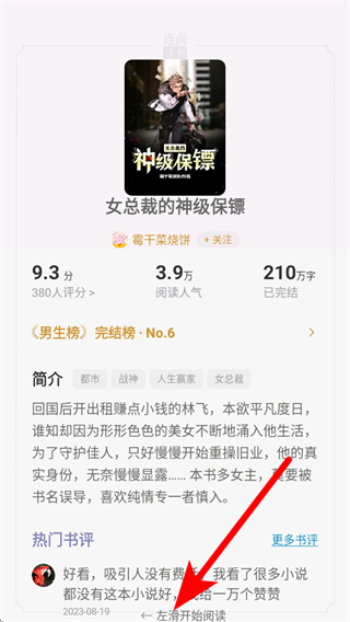 1、點擊想要查看書評的小說,進入小說詳情頁面。