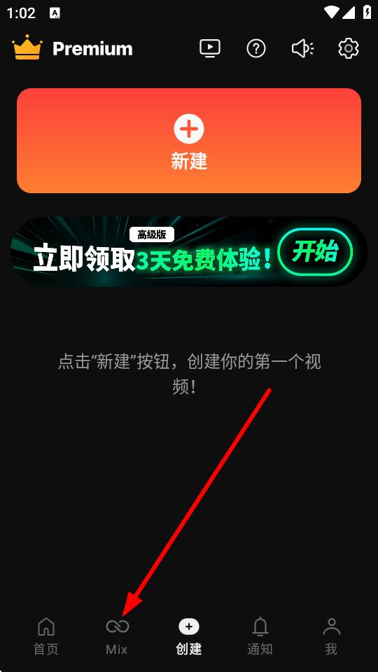 1、打開巧影APP,點(diǎn)擊底部導(dǎo)航欄中的Mix進(jìn)入相關(guān)頁(yè)面。