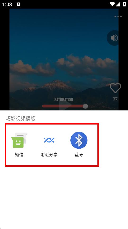 3、點(diǎn)擊后會(huì)彈出分享方式選項(xiàng),可選擇通過(guò)短信、附近分享、藍(lán)牙等方式將視頻分享給別人。