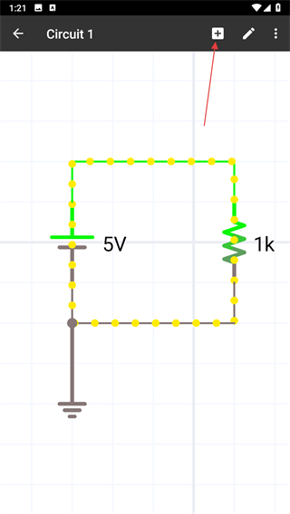 2、進(jìn)入電路編輯頁(yè)面后,點(diǎn)擊右上角的+按鈕,打開(kāi)元件添加界面。